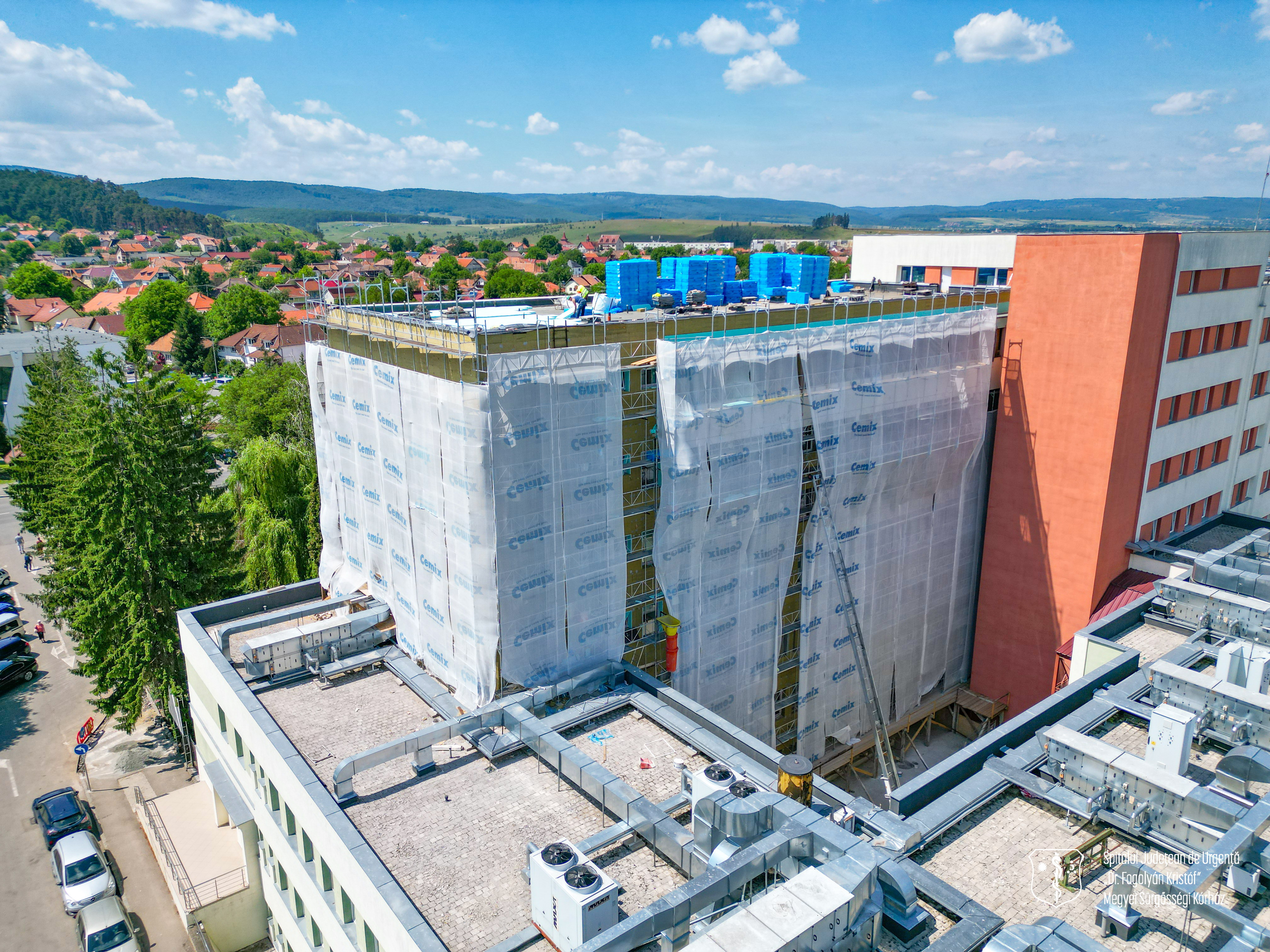 Lucrările de modernizare ale aripii C a clădirii principale și ale clădirii Boli Infecțioase avansează într-un ritm bun.Înlocuirea ferestrelor și ușilor are loc treptat, etaj cu etaj, iar izolarea completă a acoperișurilor în cazul ambelor clădiri a fost deja finalizată. Pe acoperișul clădirii Boli Infecțioase a fost instalat un atic și balustradă de protecție.